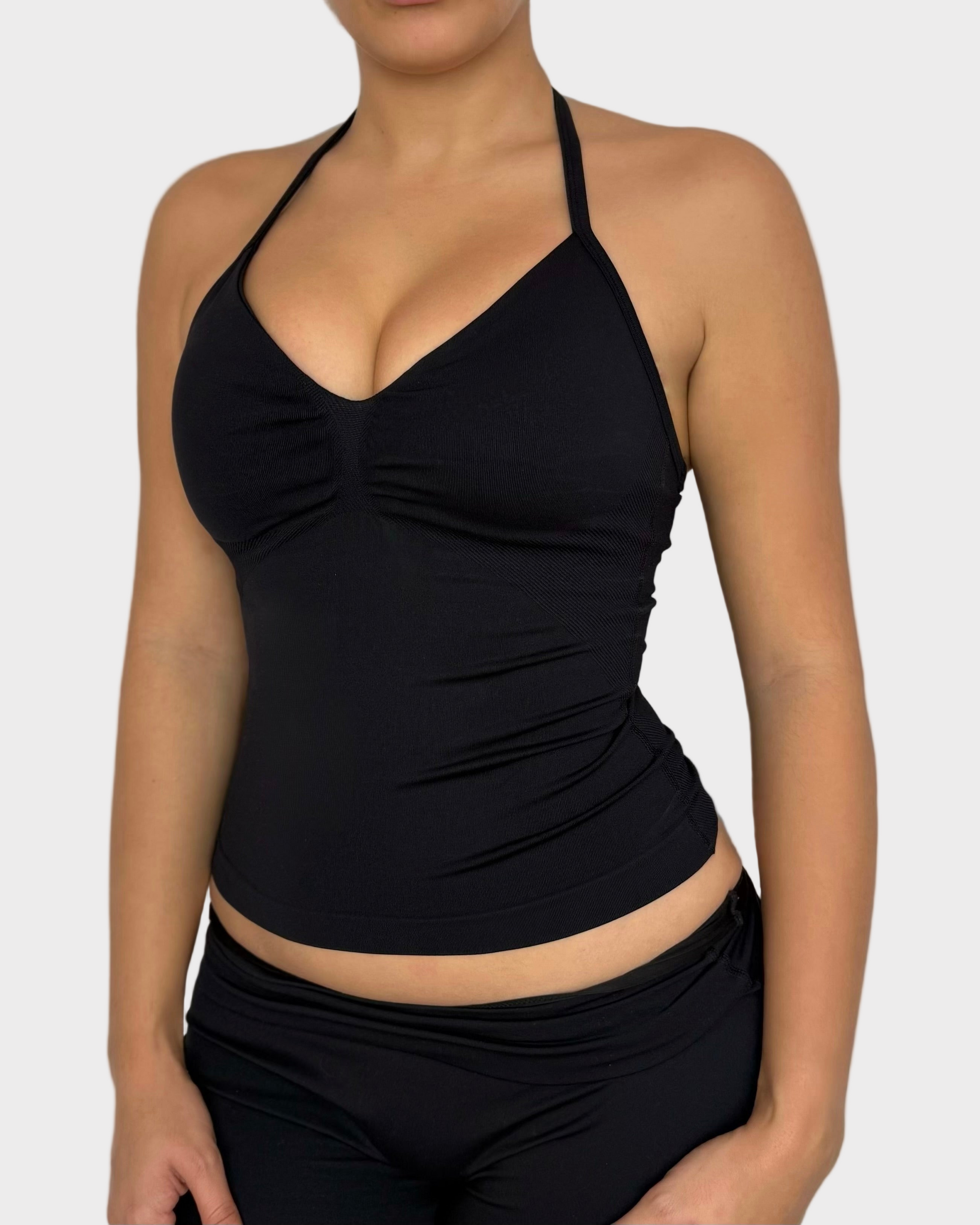 Top effet seconde peau avec brassière intégrée, pour un maintien naturel sans avoir besoin d’en porter une en dessous.