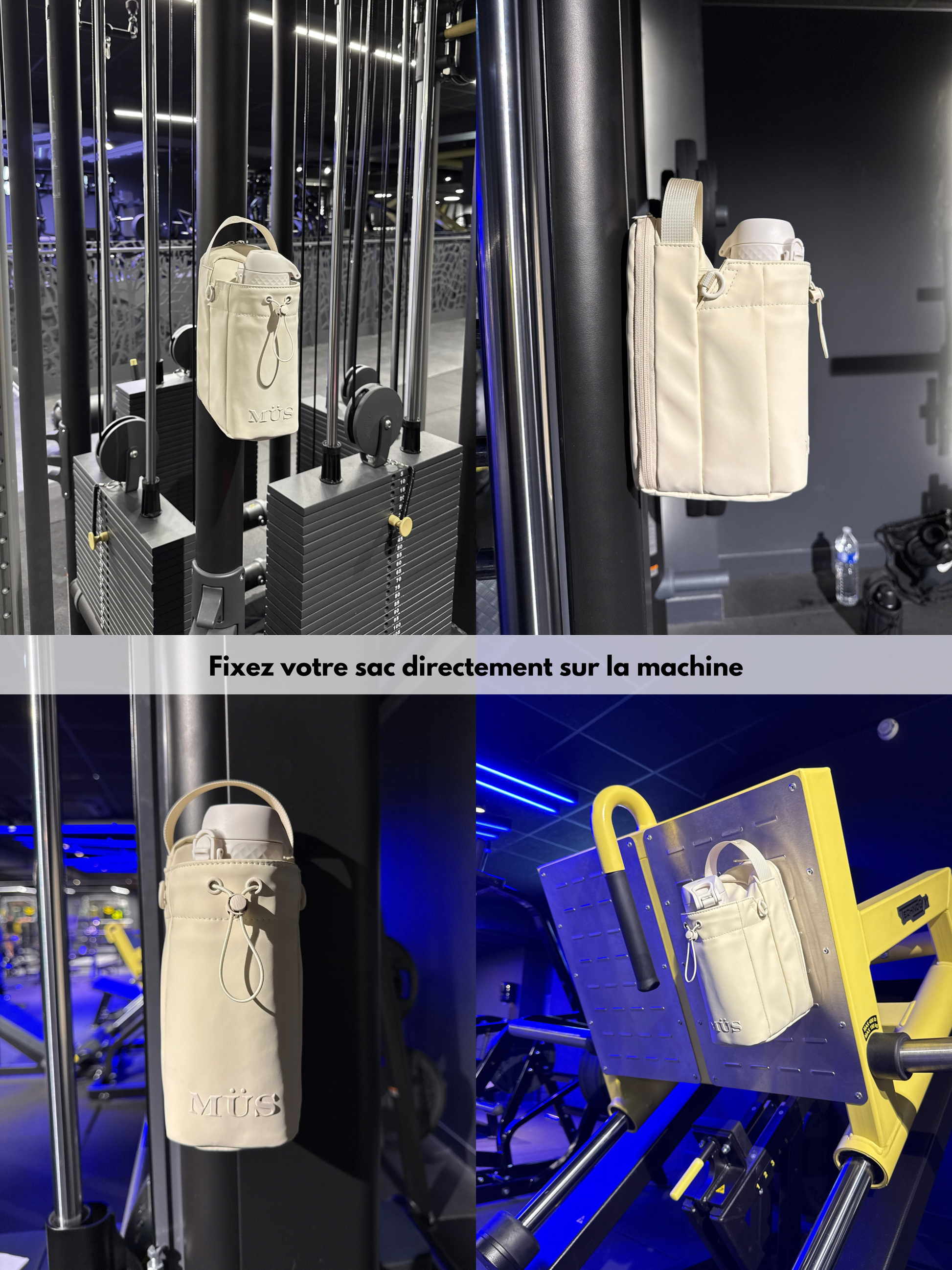 Vos essentiels restent propres, organisés et toujours à portée de main pendant votre entraînement.